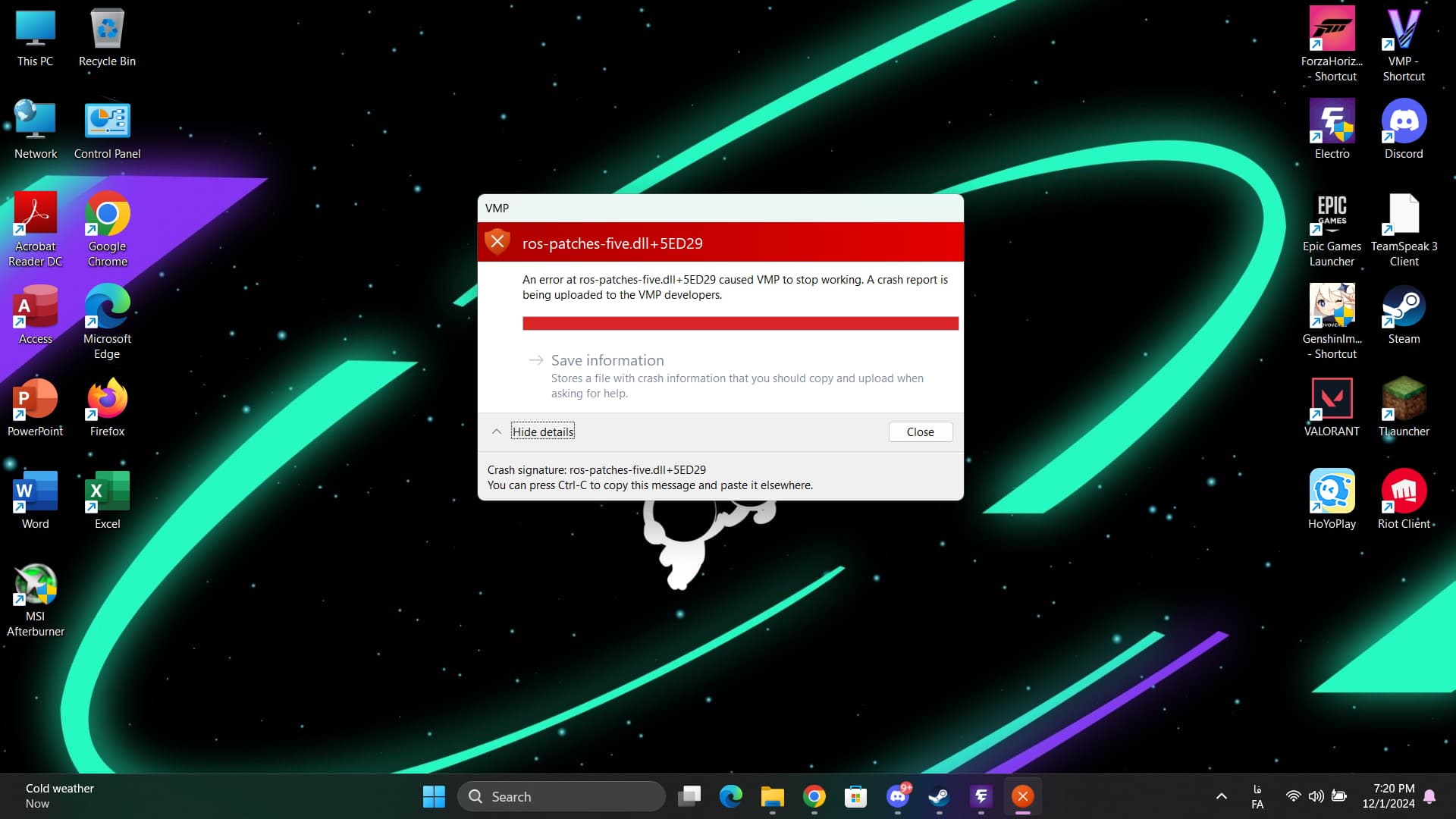 فایل کرش دامپ(با کلیک کردن روی Save information موقع کرش میتونید سیو کنید):
