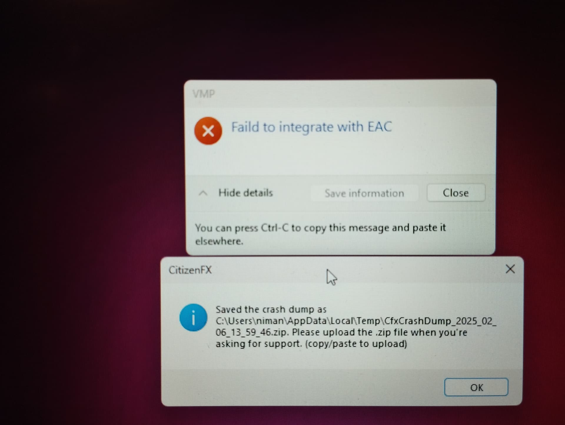 فایل کرش دامپ(با کلیک کردن روی Save information موقع کرش میتونید سیو کنید):