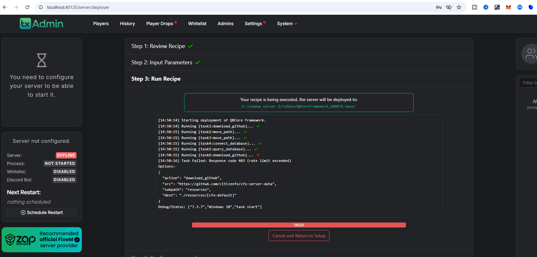 بعد از گرفتن مرحله لایسنس و کپی آن در سرور و بعد از زدن گزینه Run با ارور در task 6 رو به رو میشم در مرحله : download_github راه حلش چیه ؟ ممنونم