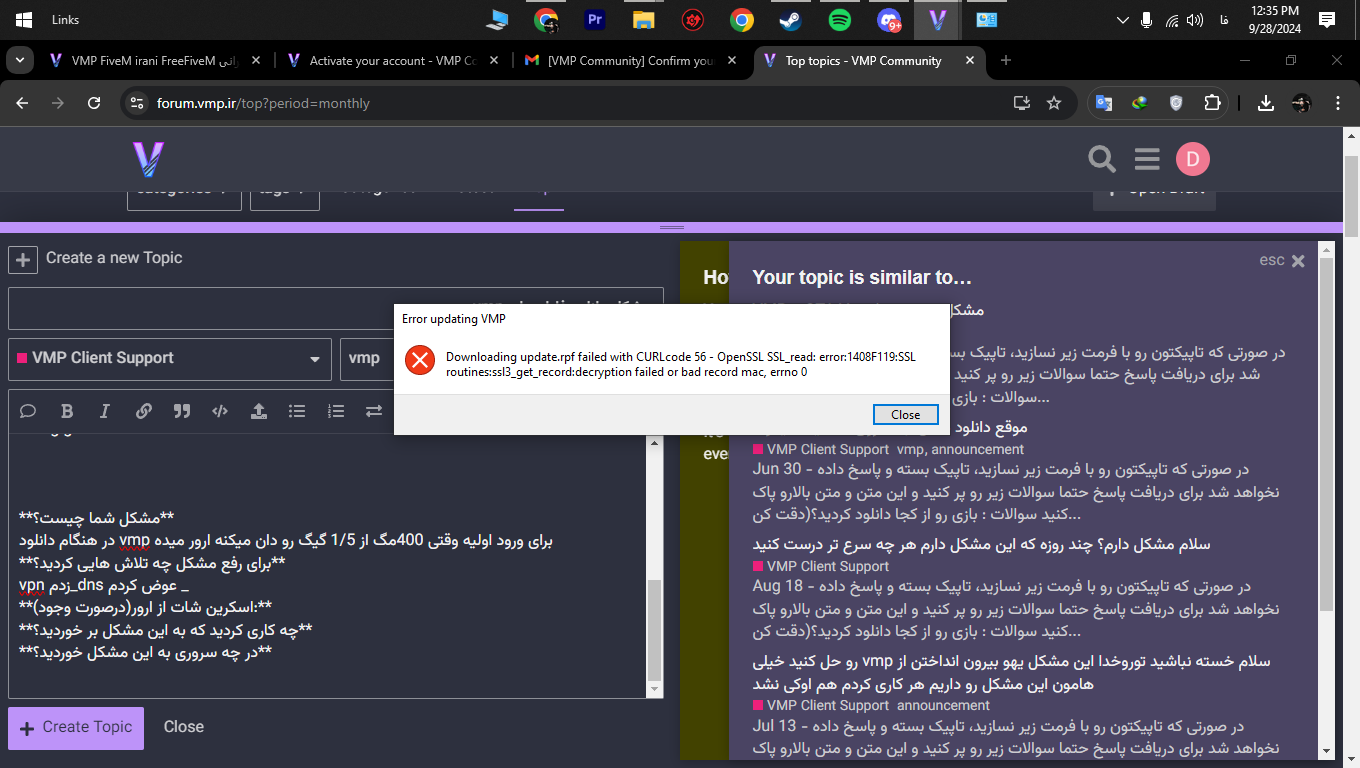 در هنگام دانلود vmp برای ورود اولیه وقتی 400مگ از 1/5 گیگ رو دان میکنه ارور میده
